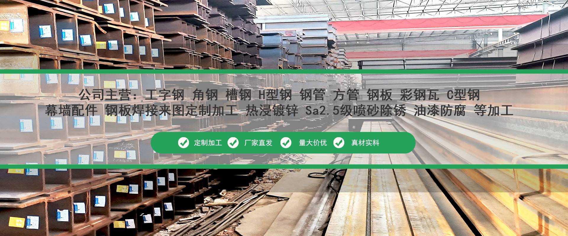 廣東佛山京錦鋼鐵是華南地區(qū)大型鋼鐵貿(mào)易商,廣東華南鋼材現(xiàn)貨批發(fā)交易,主營工字鋼、槽鋼、角鋼、H型鋼、鋼管、鋼板等,型號(hào)規(guī)格齊全,批發(fā)價(jià)格更優(yōu),公司配有鋼管防腐加工廠,熱浸鍍鋅生產(chǎn)線二條,鋼材Sa2.5級(jí)噴砂,拋丸除銹,高頻焊接、折彎、沖孔、鋼板切割、等配套加工廠歡迎來電咨詢。